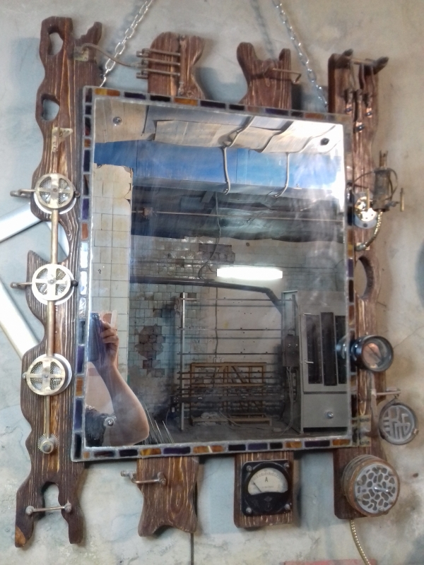 The more unusual - the better, when it comes to home decor items. To create an original mirror, you can rely on steampunk - a science fiction trend inspired by 21st century steam energy. To create a mirror, you will need levers, valves and gears made of metal, which can be purchased at needlework stores or borrowed from mechanics, a glue gun and personal imagination.