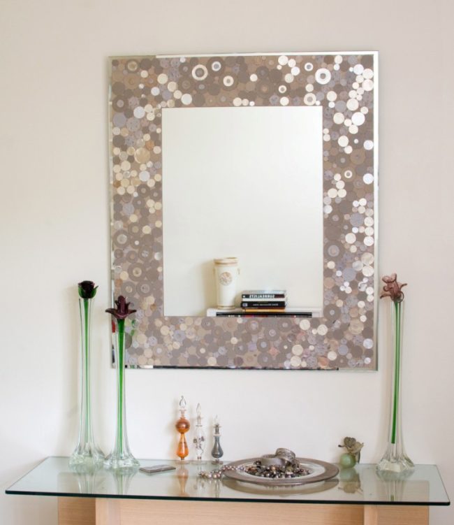 - Creating a mirror decor with your own hands, you can get a product of any shape and size.
