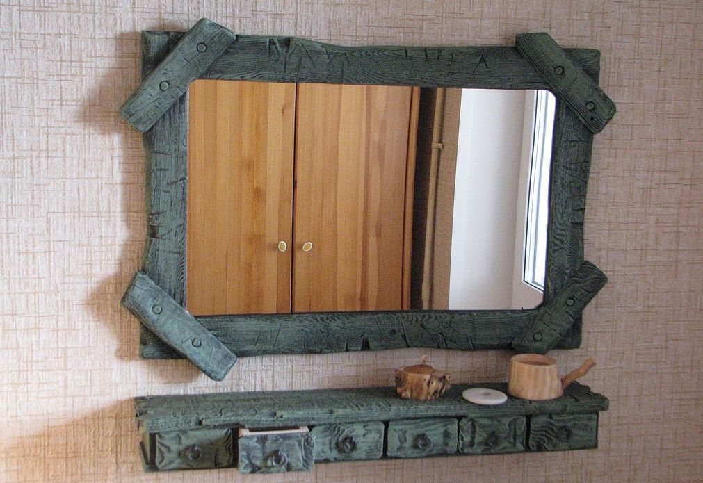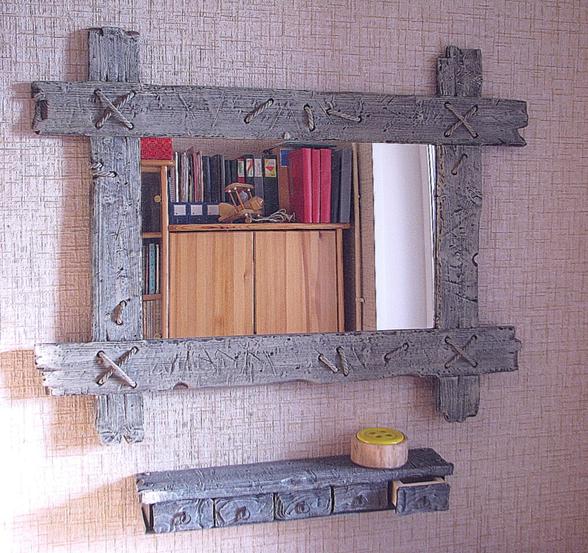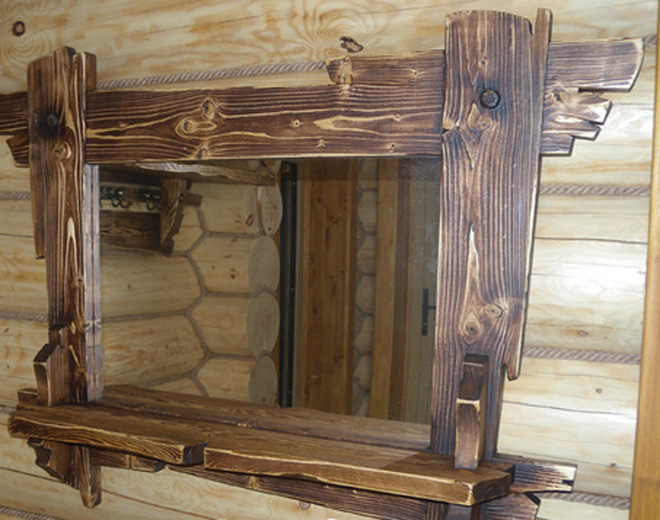 The simplest thing you can do with a mirror is to make a wooden frame for it. In the assortment of building stores today you can find many suitable materials: natural wood planks, door trim, ceiling plinth.The advantages of these materials: accessibility, a wide palette of colors, ease of use. The main "trick" when creating a wooden frame for a mirror with your own hands is the actual selection of the color of wood for the interior of the room. In the manufacture of the frame of the workpiece can be cut at angles of 45 (diagonal) and 90 degrees (perpendicular plane).