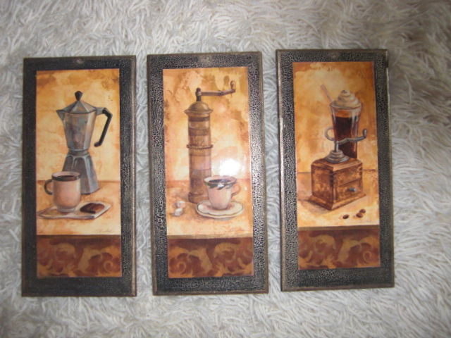 A universal option - small paired panels. Moreover, there may be more than two, but always one topic. The kitchen is decorated with triptychs - three paintings that continue each other.
