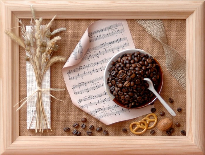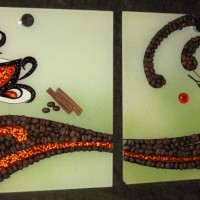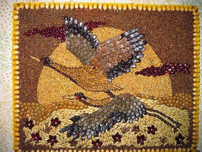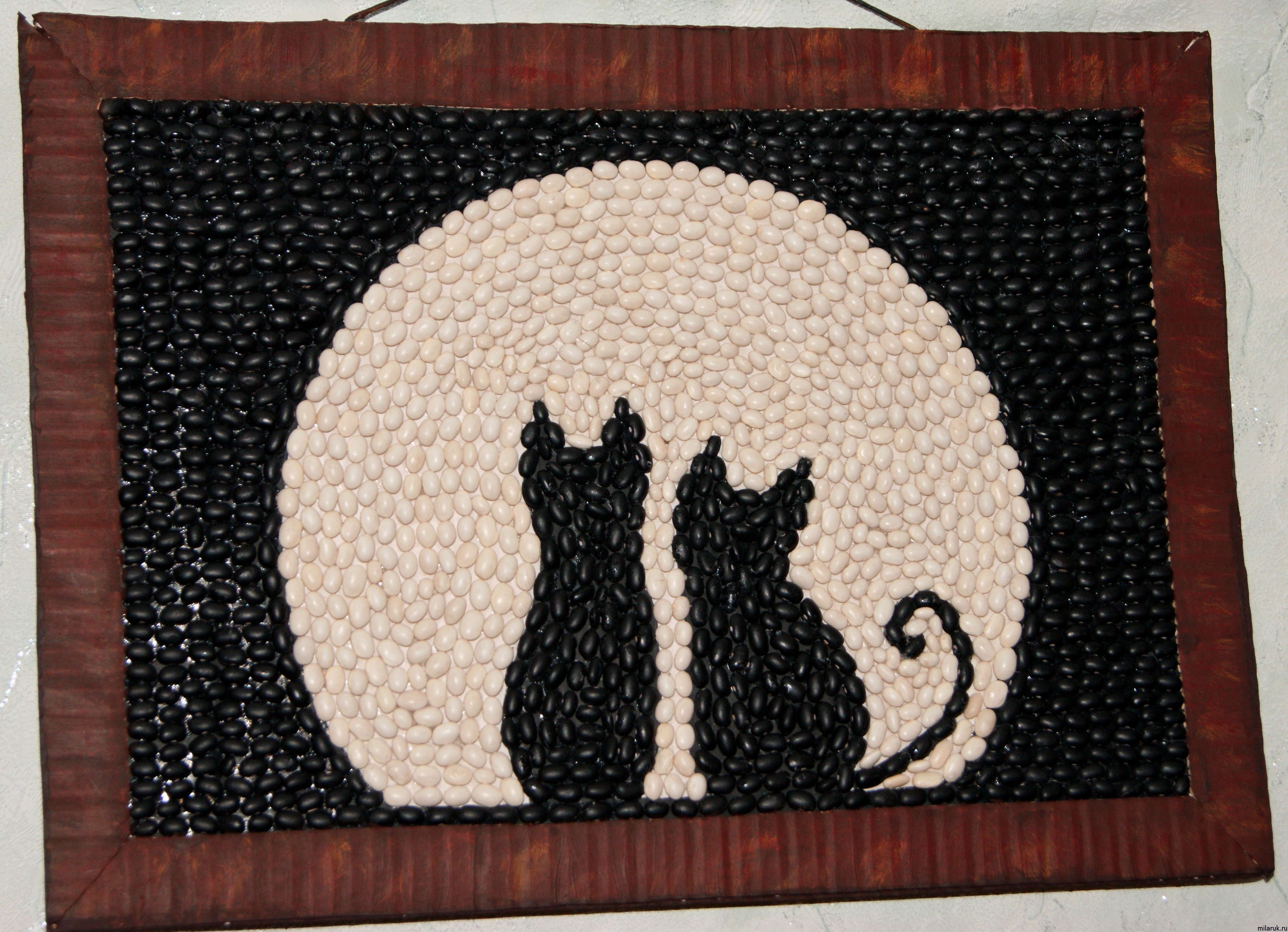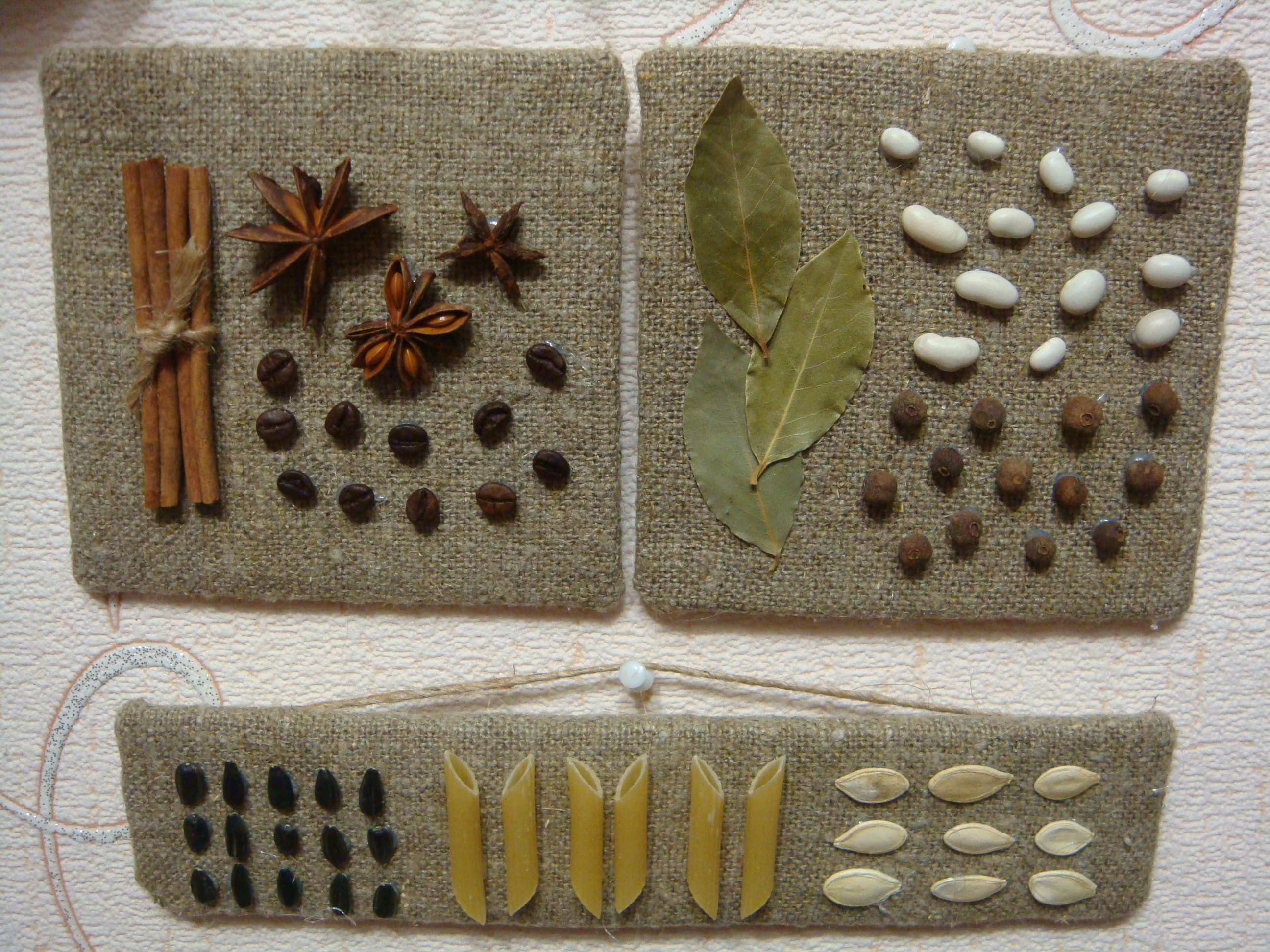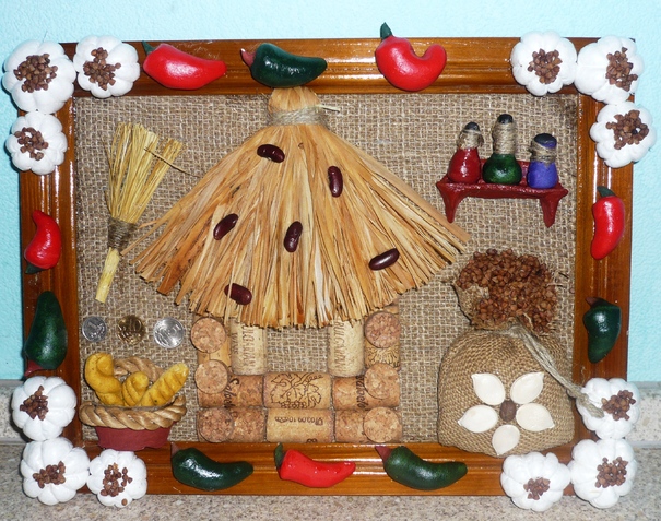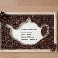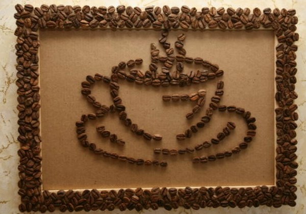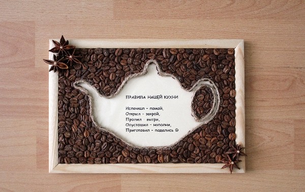 Traditionally, in the kitchen coffee, pasta and cereals are used to create panels. It is not always cheap and far from original.