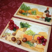 Volumetric still lifes, different flowers, fruits are suitable for the kitchen. They are glued to the base or made of them ready-made plates as in the photo.