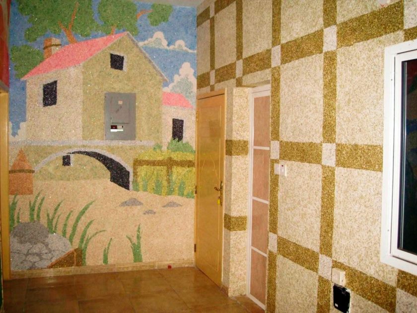- And, perhaps, one of the main advantages is that liquid wallpaper can easily be corrected and restored in the event of a defect.