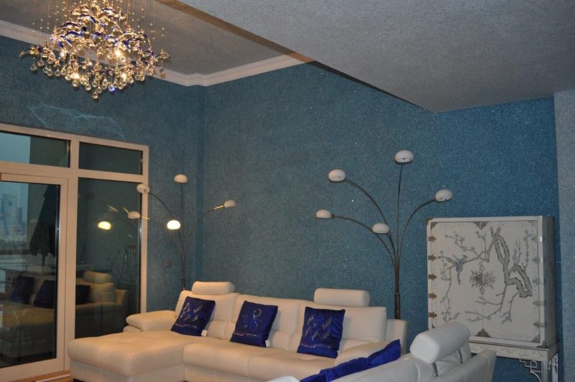 Liquid wallpaper in the interior looks quite unusual and attractive. They organically fit into any style of the room. With their help, you can transform the look of the living room, bedroom or children's room. The natural silk fibers included in the composition will add refinement and gloss to your apartment, creating the illusion that the walls are decorated with expensive textile wallpaper. At the same time, if there is a desire to update the design, wall decoration with new wallpaper will not be a hassle, since removing them is quite simple. It is enough to soak the surface with water.