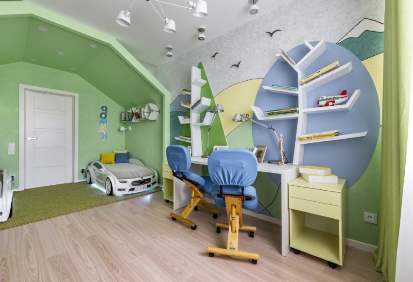 Another useful feature of liquid wallpaper is the possibility of zoning the room. Playing with color and texture, you can visually expand the room and add light to it.Individual design can be developed for each room. For example, children's space can be stylized with boats, clouds, flowers and cute animals. And for the living room, a monotonous coating with the addition of a small amount of small sparkles or nacre will be appropriate. The so-called melange effect and a rather large coating texture will also look interesting and advantageous. If you want to depict various landscapes, contrasting transitions or bright color splashes - any design with liquid wallpaper is possible. But it should be remembered that this type of wallpaper is deformed in contact with water. Therefore, it is highly discouraged to use them in bathrooms and kitchens.
