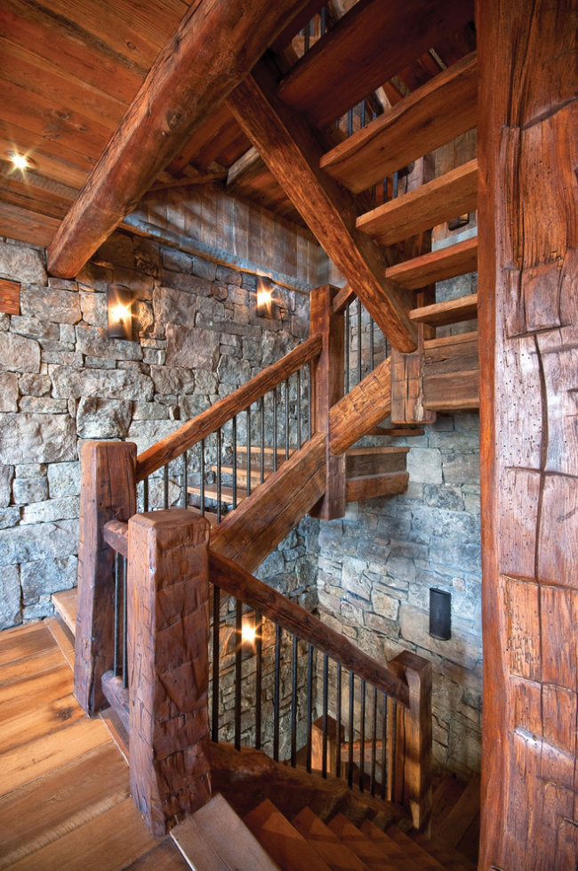 Escalier de naturel matériaux S'intègre parfaitement dans le style écologique. De plus, tous ses éléments devraient être exclusivement en bois. La présence de motifs sculptés sur constructions ajustement ethno-style. La balustrade en bambou complétera parfaitementsalle en forme à la japonaise. Construction les formes brutes s'inscrivent dans la direction du pays. La Provence prévoit la disposition des blancs les installations. Vous pouvez souligner son élégance avec des éléments forgés ou sculptés.