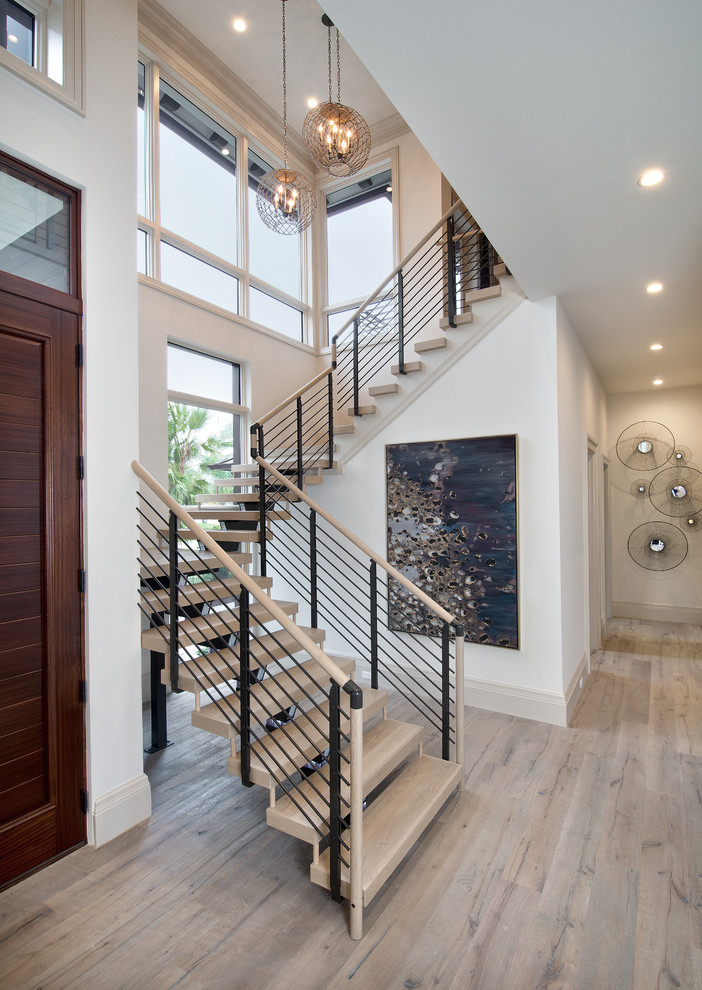 Avec des passages larges et sûrs, vous pouvez vous passer d’une balustrade, ce qui rendra l’environnement encore plus aéré.