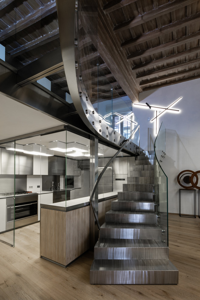 Aux avantages de tels les installations inclure le fait qu'ils répondent aux exigences de sécurité incendie. Vous pouvez combiner plusieurs lignes: lisse et droite. Les formes complexes sont harmonieusement combinées. C'est un bon terrain d'action pour les concepteurs. Vous permet de créer des variations uniques. les escaliers.