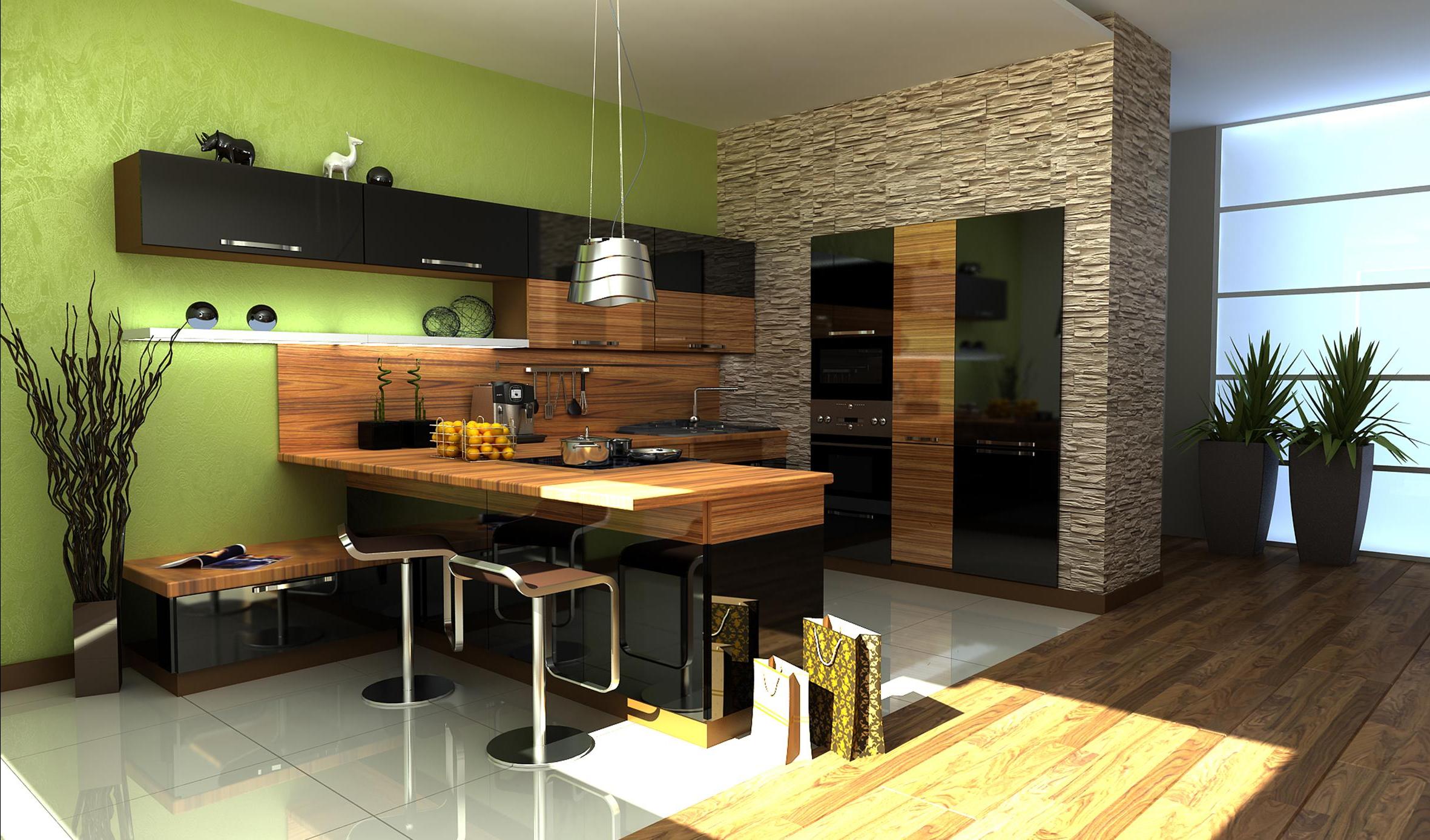- L'ensemble de cuisine est certainement commandé à partir d'un arbre. Les dalles de pierre artificielle sont généralement utilisées comme surfaces de travail.