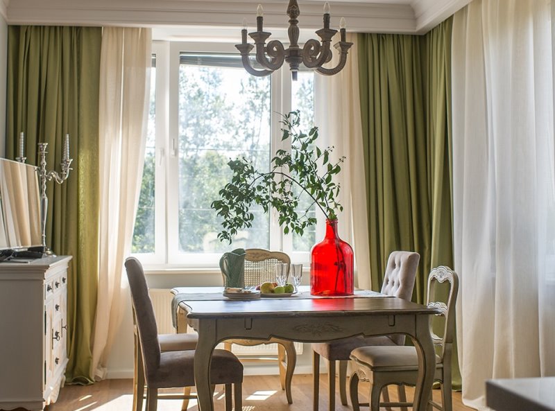 Les rideaux verts sont intéressants, car ils laissent pénétrer la lumière du soleil et remplissent toute la pièce d’une douce lueur naturelle. Dans ce cas, la couleur verte crée une atmosphère naturelle et influe positivement sur la situation psychologique de la maison ou de l'appartement.