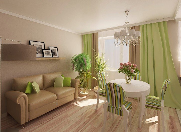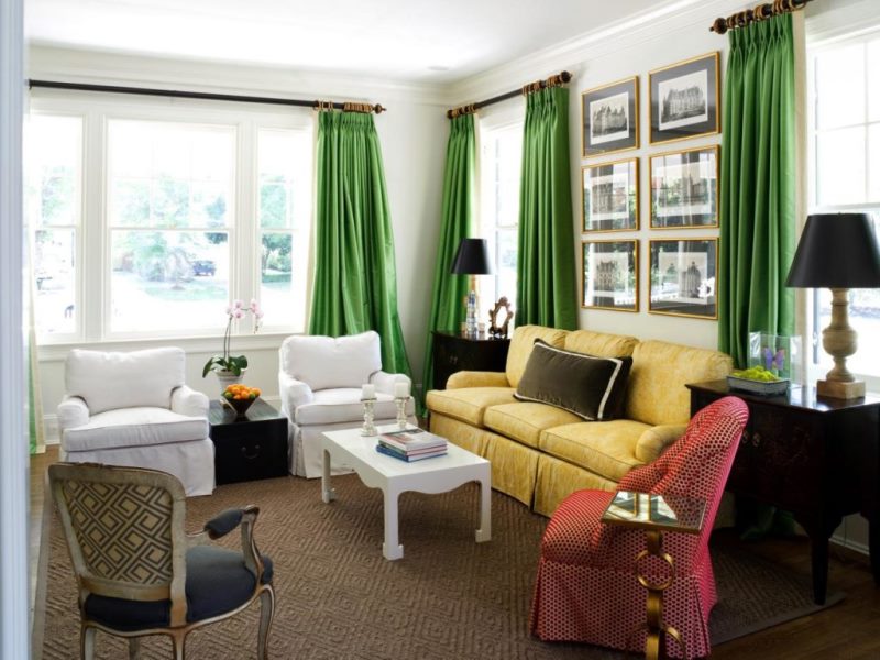 Rideaux verts sur les fenêtres - une excellente solution pour créer une atmosphère confortable et accueillante dans le salon