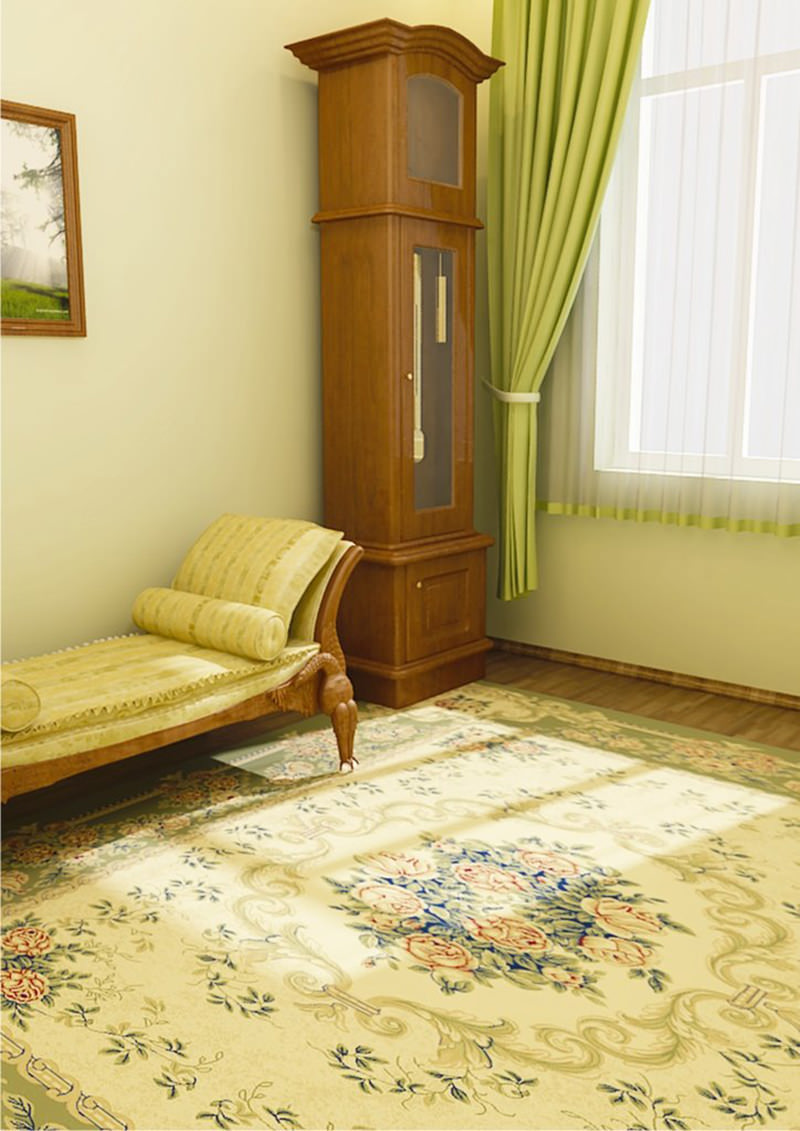 Le vert peut être reproduit dans les tissus d'ameublement, les revêtements de sol ou le papier peint