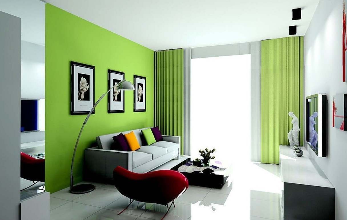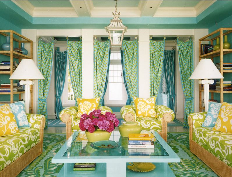 De nombreux designers choisissent le vert vif pour créer un contraste de couleurs. La pièce peut être décorée avec des couleurs crème apaisantes, des rideaux, des coussins de canapé, un tapis ou un lustre peuvent être saturés de vert, ce qui procure une sensation de fraîcheur et de vitalité. Cette technique est avantageuse pour les deux parties et convient parfaitement à un salon dans lequel il y a plus d'espace pour battre une combinaison de couleurs inhabituelle.