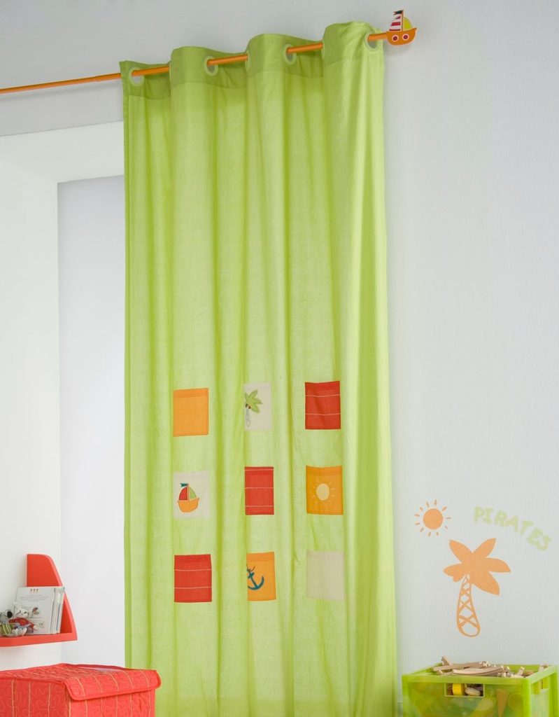- Enfants. Pour la chambre d’un enfant, la couleur verte est excellente. Sa capacité à créer une atmosphère calme mais énergique contribue au développement de processus de pensée et à un meilleur apprentissage. Pour la chambre des enfants, vous pouvez utiliser des rideaux verts avec des motifs amusants qui plairont à l'enfant.