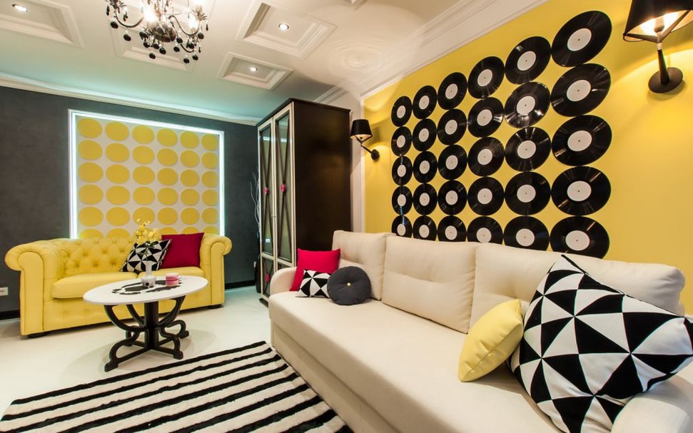 L'Art déco regorge d'imprimés sous forme de larges rayures, d'images d'animaux et de plantes, et le style intérieur art déco est riche en éléments tels que: des figures géométriques comme un leitmotif de la décoration de la pièce, diverses figurines en pierre ou en métal.