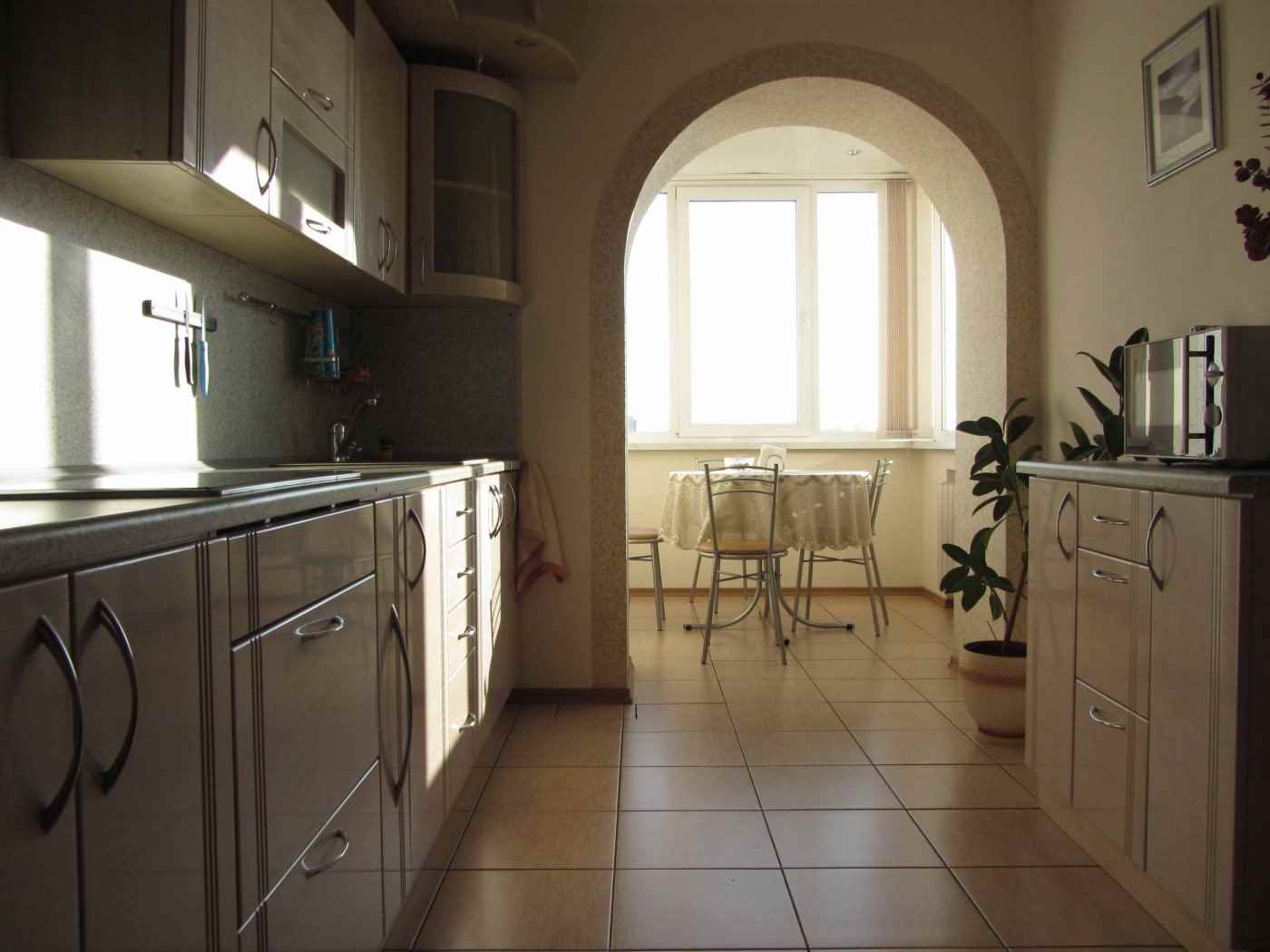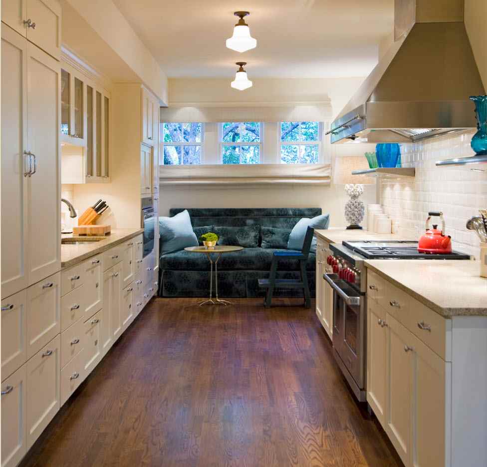 Une telle zone n’est guère idéale. Mais cela laisse place à l'incarnation de différentes idées. La bonne organisation de l'espace, l'utilisation de l'ensemble de la zone créera un intérieur magnifique et confortable. Il est important de commencer par élaborer un projet de conception, seul ou avec l'aide de professionnels. Cela vous permettra de prendre en compte les nuances importantes et de transformer les caractéristiques d'une cuisine en avantages.