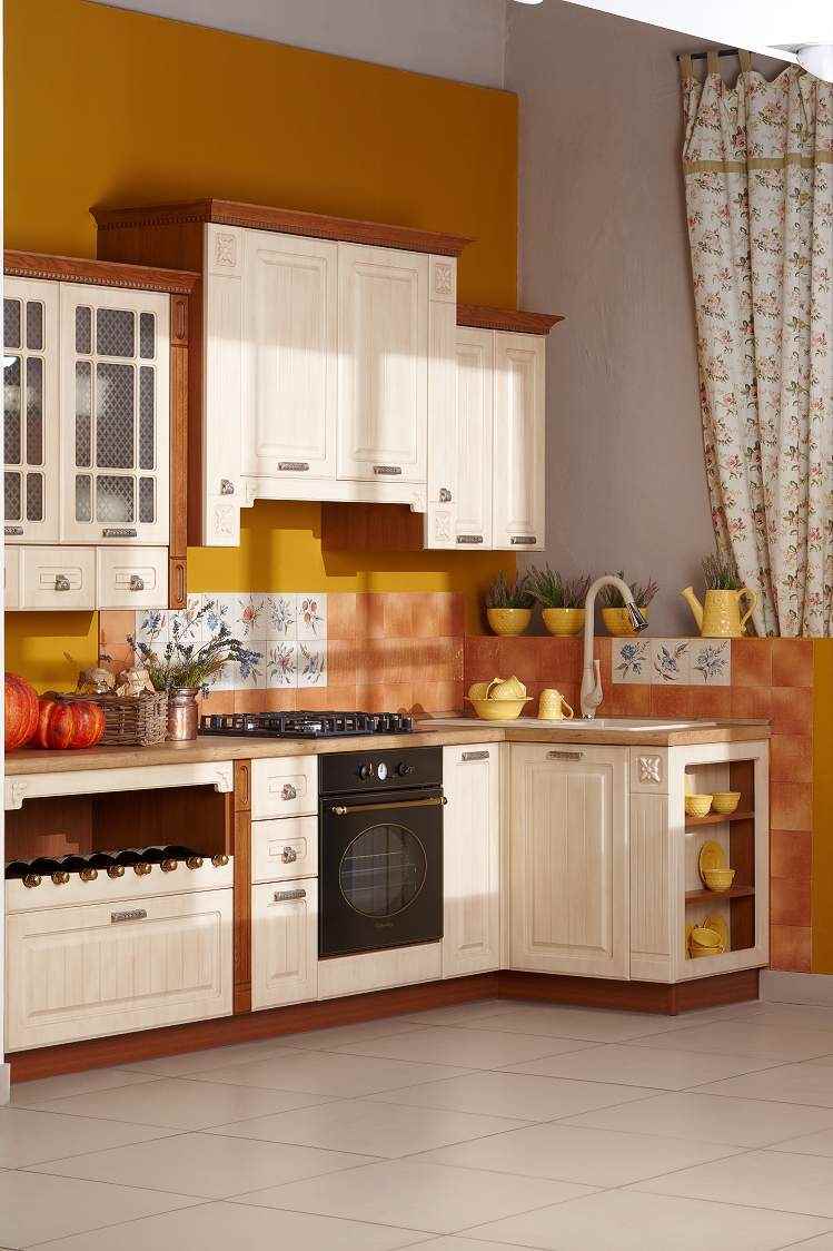 Le style country est dans la conception des fleurs. Une riche palette de lumière, des matériaux naturels et un maximum de décor rustique. La Provence a l’occasion d’incarner l’atmosphère française en cuisine. Utilisez beaucoup de motifs floraux et de couleurs claires.