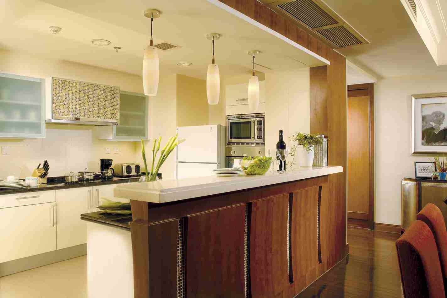 - Les gros appareils comme un réfrigérateur doivent être cachés derrière la cuisine.