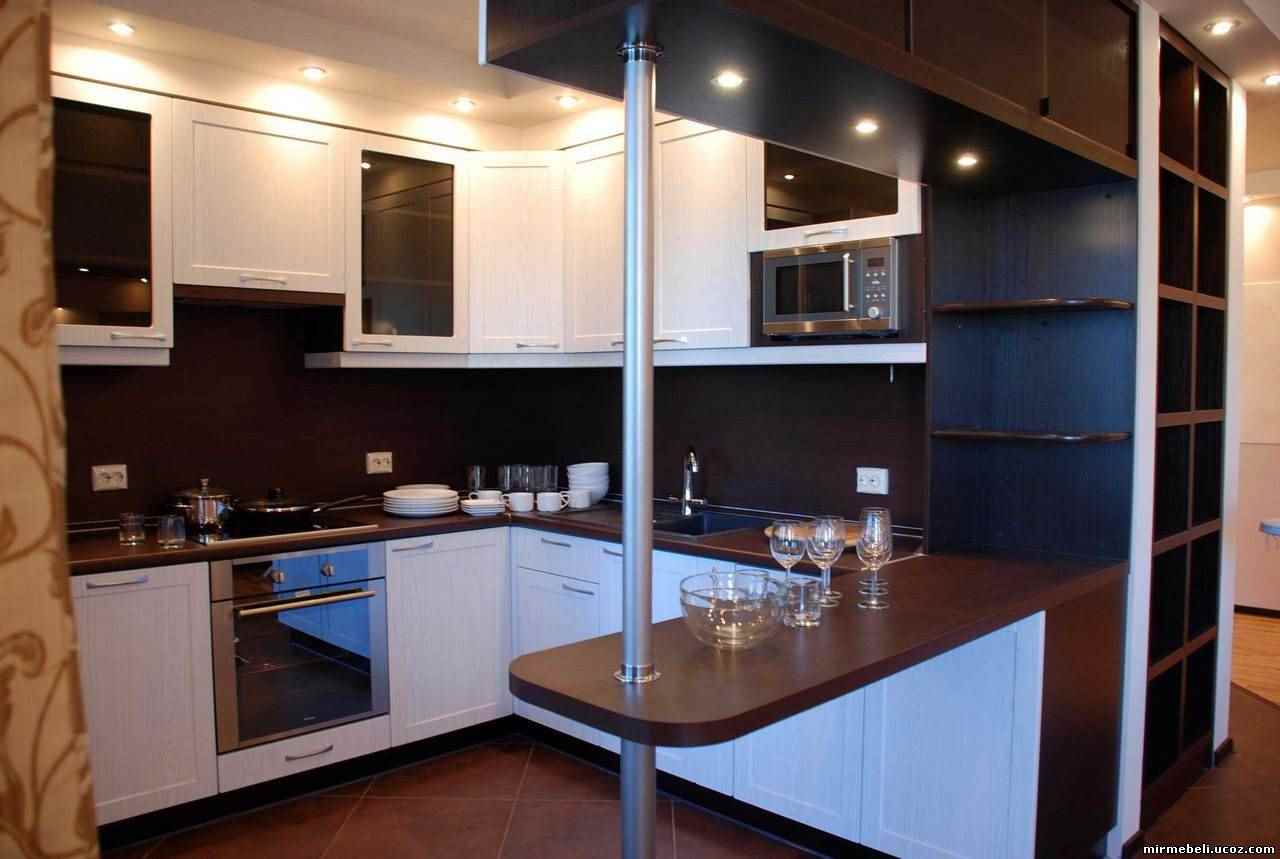 - Péninsulaire. Un plus est la possibilité de diviser l'espace en plusieurs zones. D'une part, l'espace de travail, d'autre part, fait la partie salle à manger.