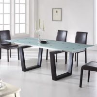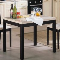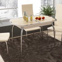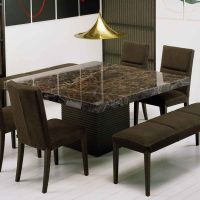 Il est rare que vous rencontriez une finition similaire à votre espace de restauration. Mais les personnes à la recherche d'exclusivités peuvent facilement demander la fabrication d'une telle table aux maîtres. Cela coûtera un peu plus qu'une table de l'usine, mais ça ira très bien!