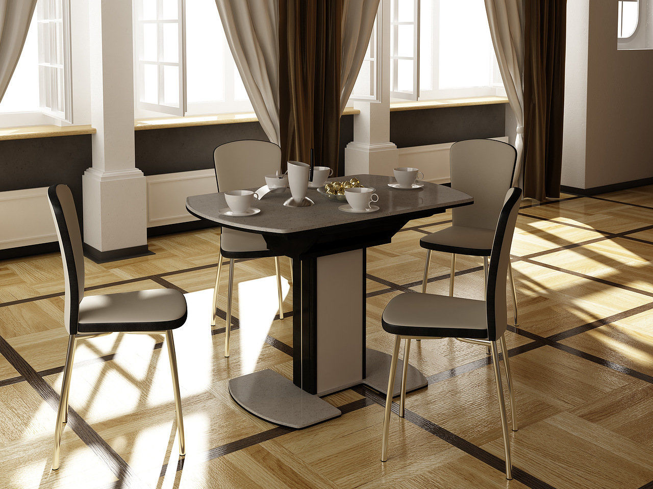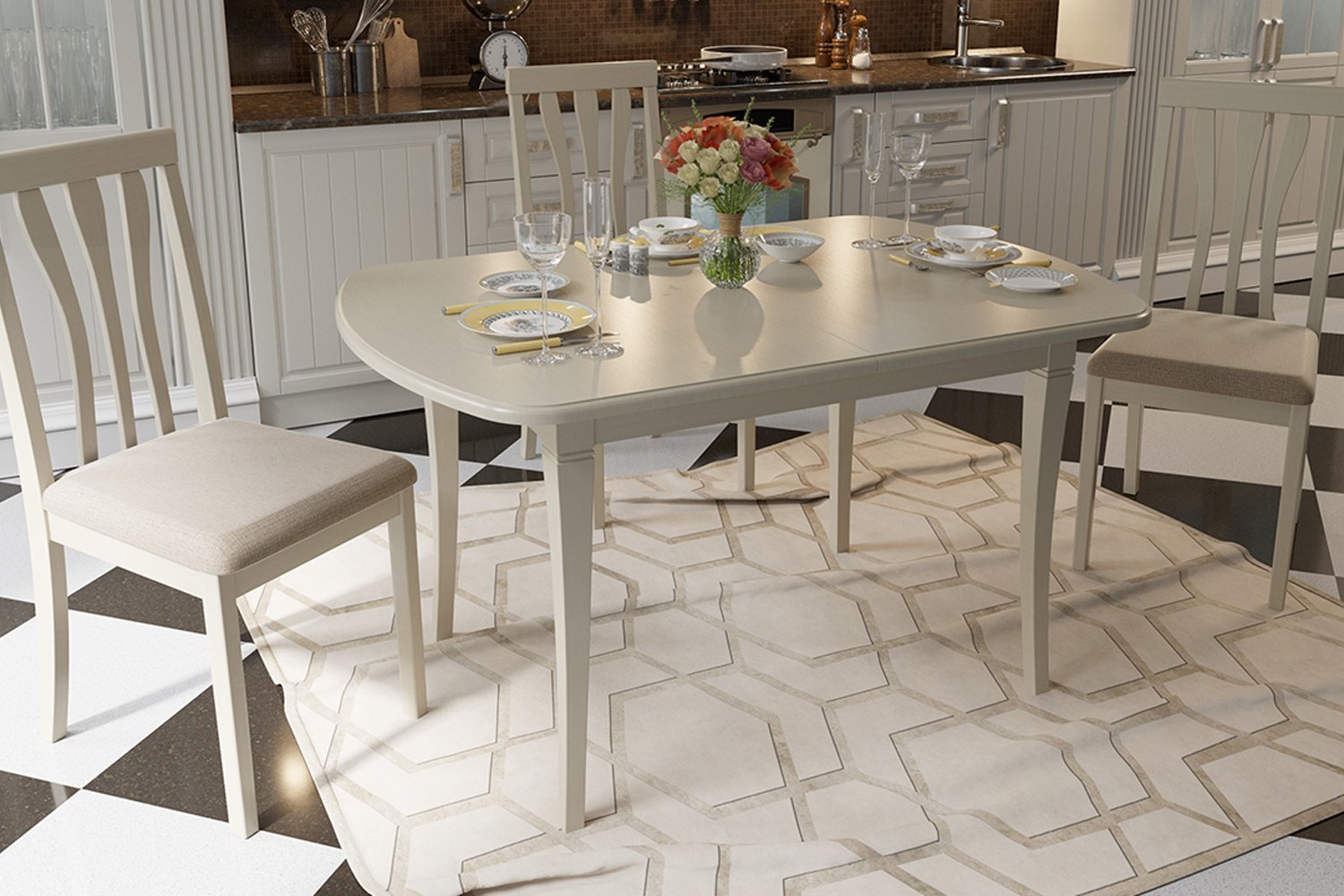 - 1 Conception d'une salle de cuisine avec table à manger extensible.