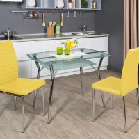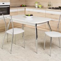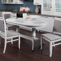 Les chaises doivent être choisies individuellement, en fonction des préférences personnelles, du budget familial alloué à la réparation et à l’ameublement de la cuisine. Il peut s'agir de chaises de différents modèles: bar, tabourets, dossier, accoudoirs et de nombreuses autres options.