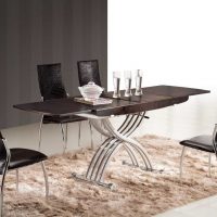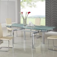 Le matériau à partir duquel sera fabriqué le réfectoire, et en particulier le plateau coulissant, joue également un rôle important. L'ambiance, le confort, la santé de la famille (peut-être le facteur le plus important) et la longévité des meubles achetés dépendront de leur qualité. Vous devez choisir la base à partir de laquelle le tableau sera établi en fonction de vos capacités financières, de votre direction stylistique et des préférences personnelles de tous les membres de votre famille.