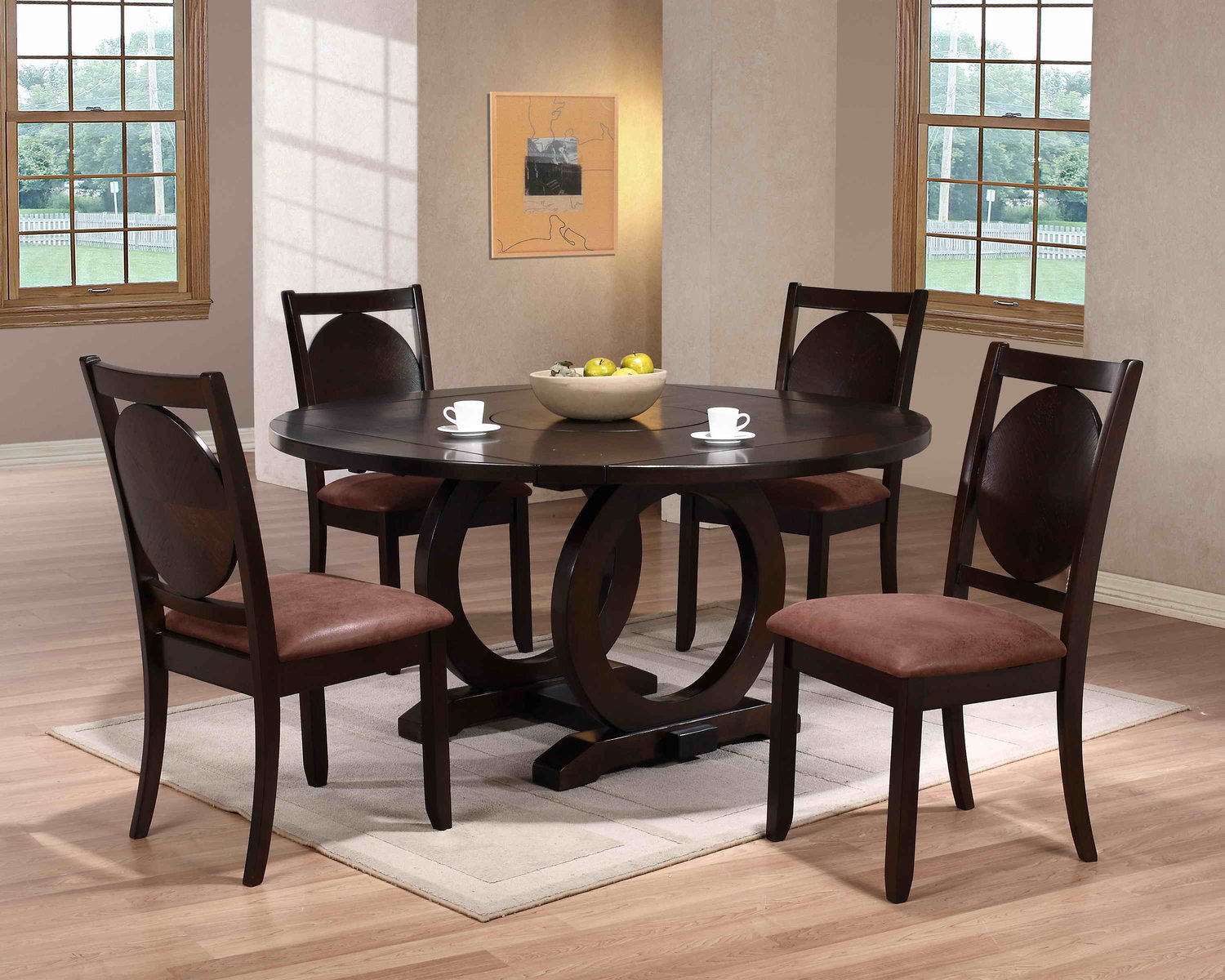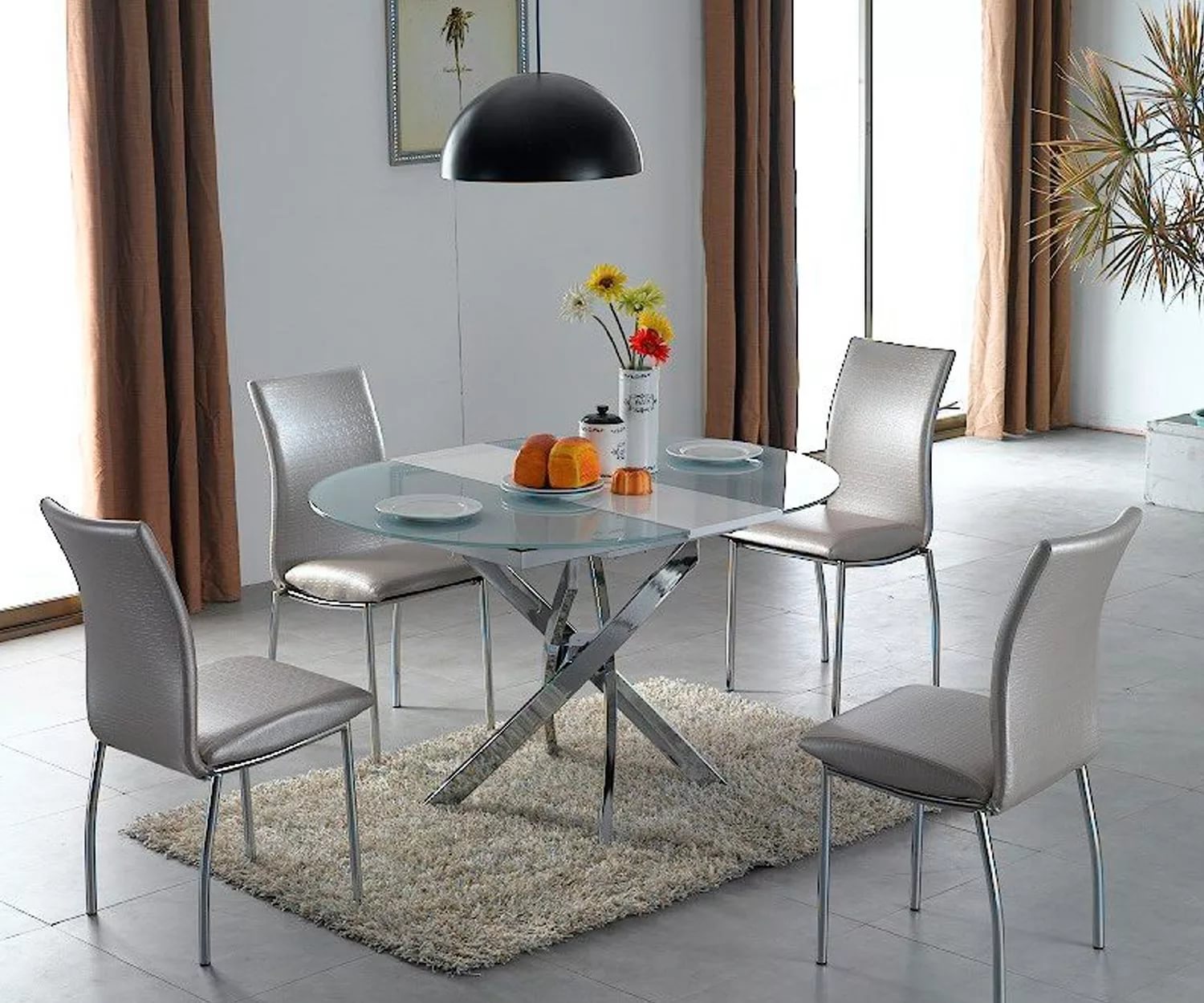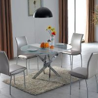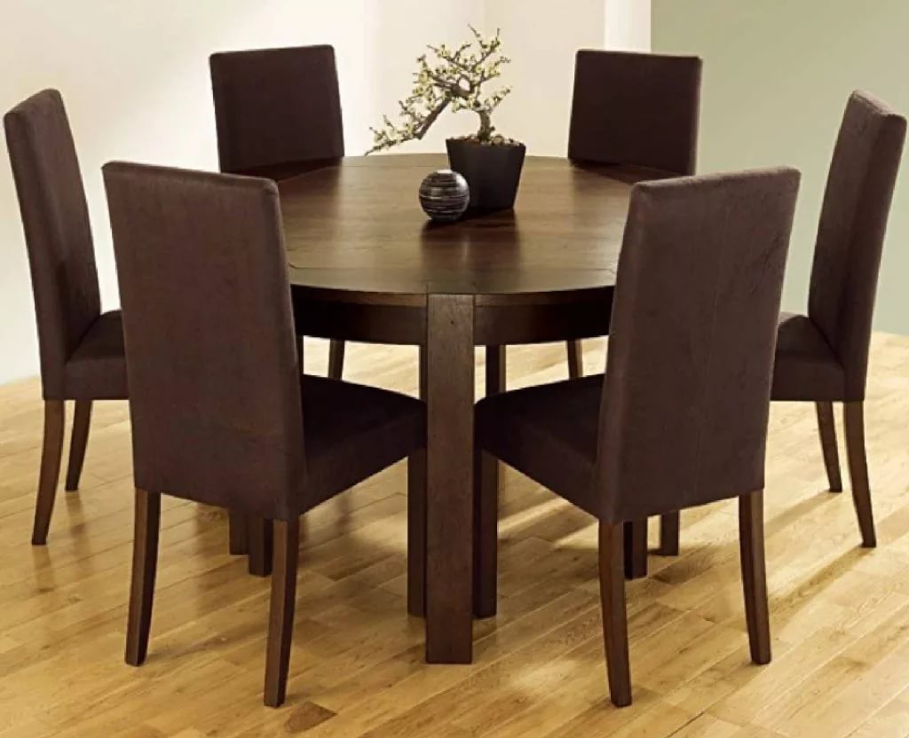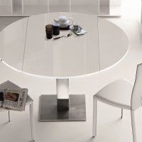La version ronde de la table à manger convient aux pièces de grande surface.