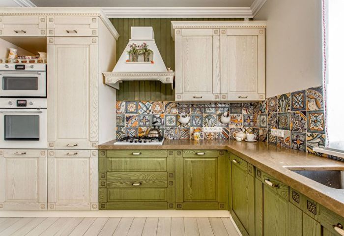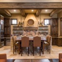 Décidez quel "village" régnera dans votre cuisine: russe, français, anglais ou américain - chacun a sa propre saveur. Dans cet intérieur, l’essentiel est tout ce qui est naturel: le bois, la pierre et la brique dans la décoration de la pièce, les couleurs naturelles du papier peint avec des motifs naturels ou une cage.