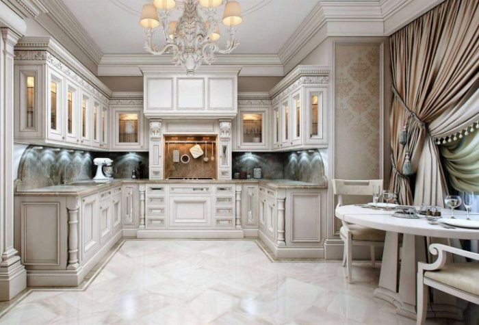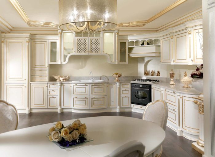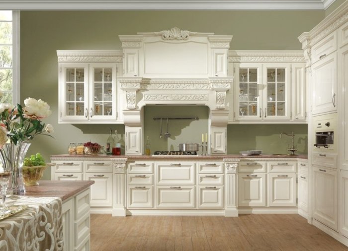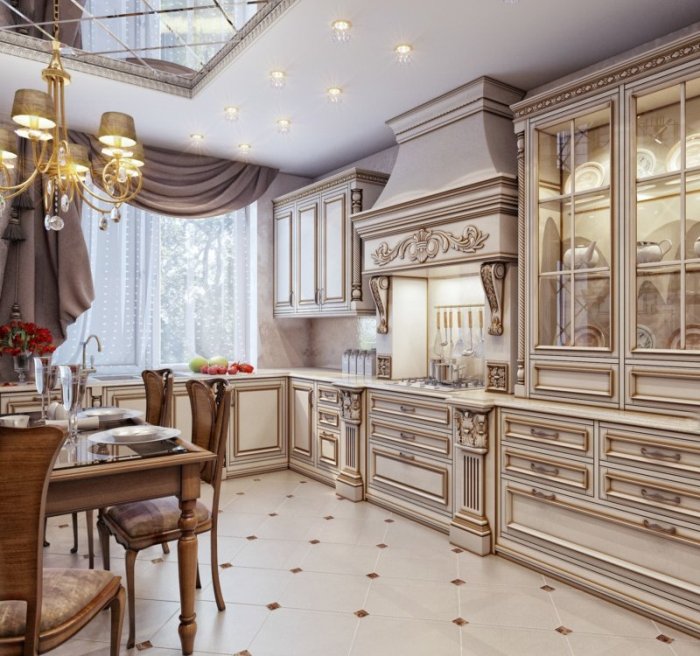 Concevez une grande cuisine dans un style classique.