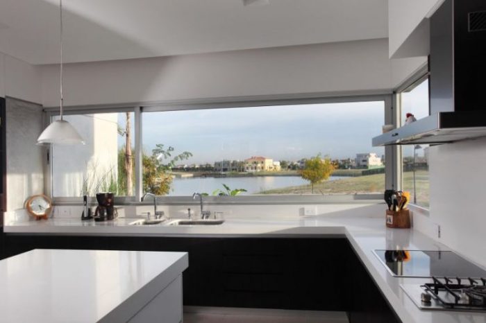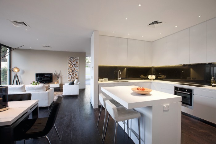 - La disposition des meubles avec l’île, qui est généralement placée sur la table de cuisson et l’évier, la divise en une zone de travail et une salle à manger.