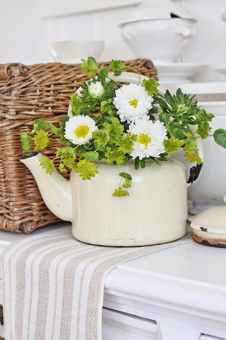 Un tel panier de fleurs serait une excellente option pour décorer la cuisine