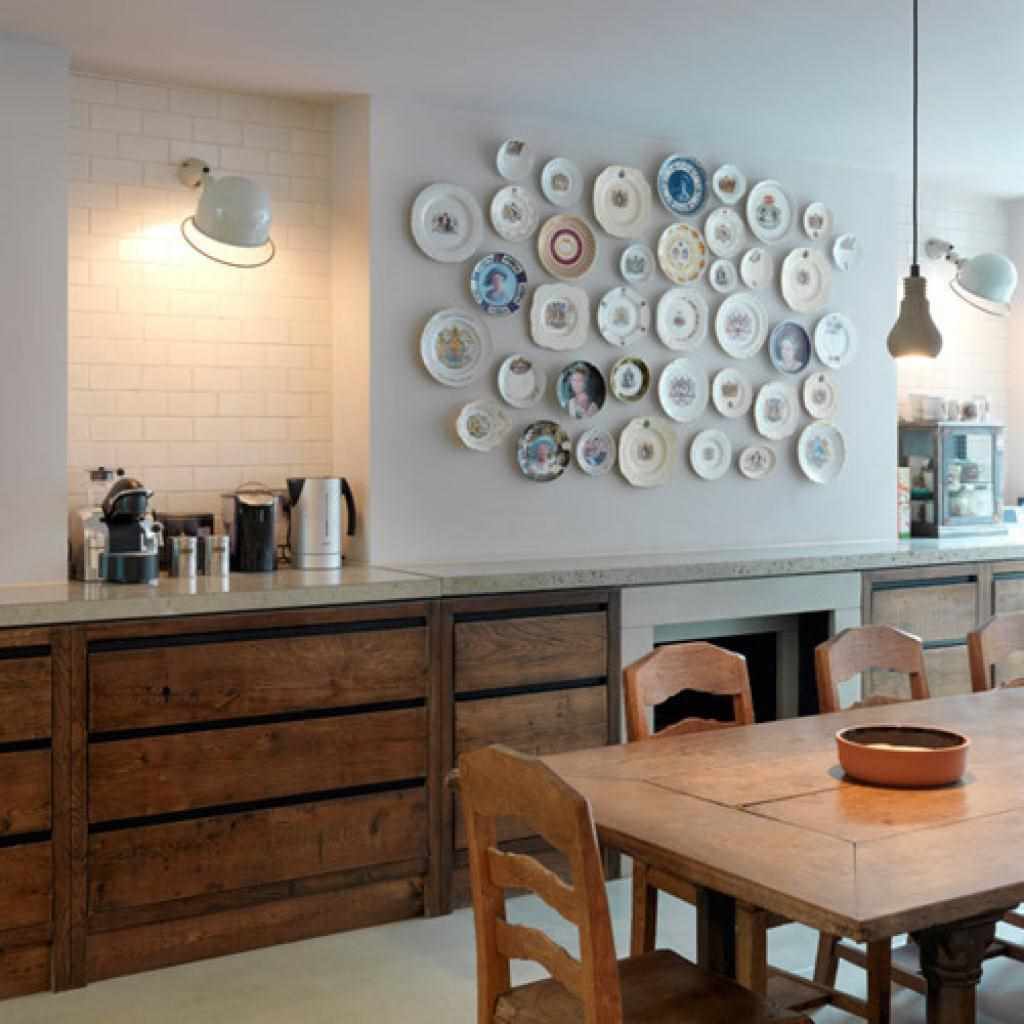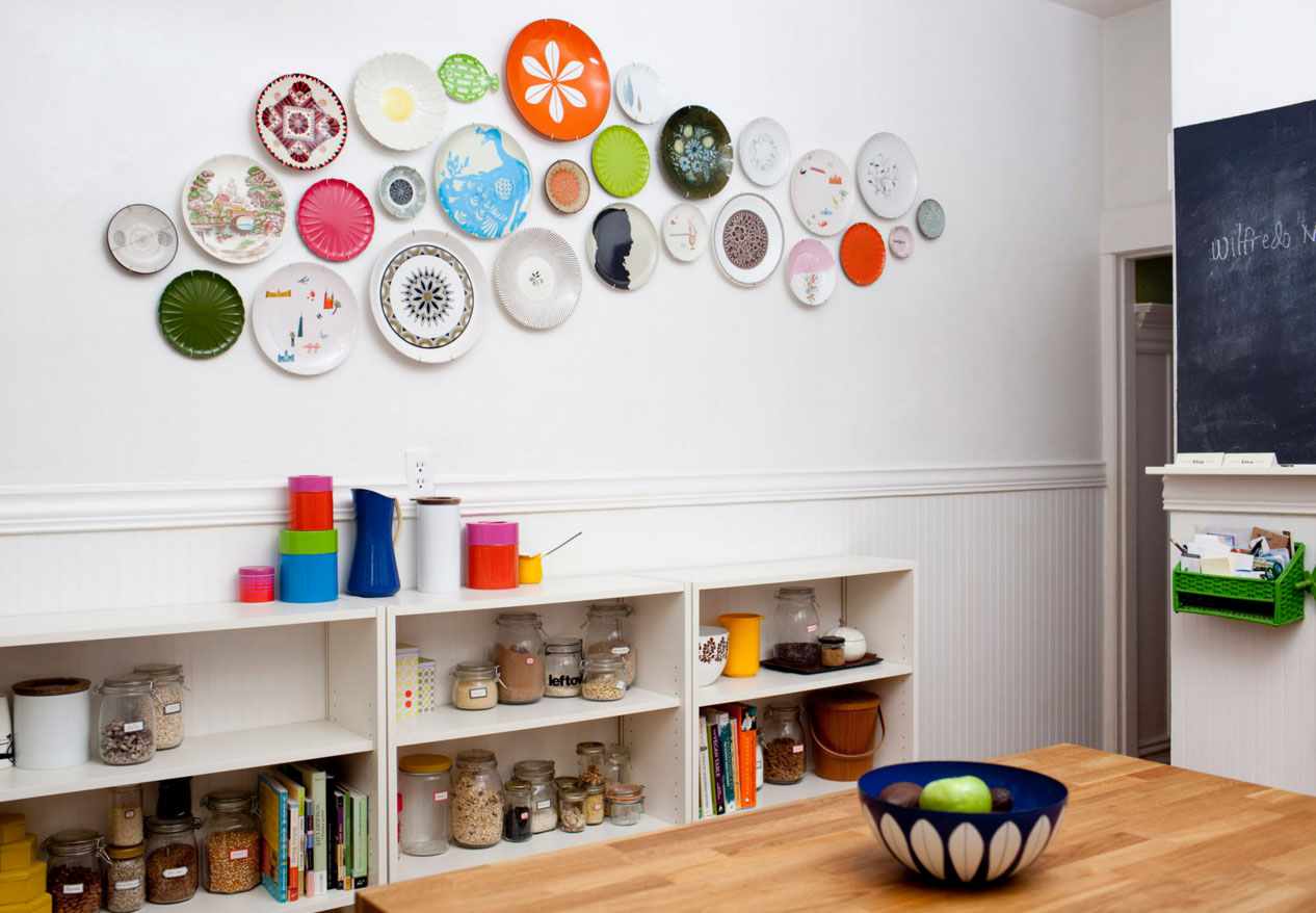 Et aussi sur des espaces vides, des assiettes peintes suspendues au hasard ou dans un certain ordre sembleront appropriées.