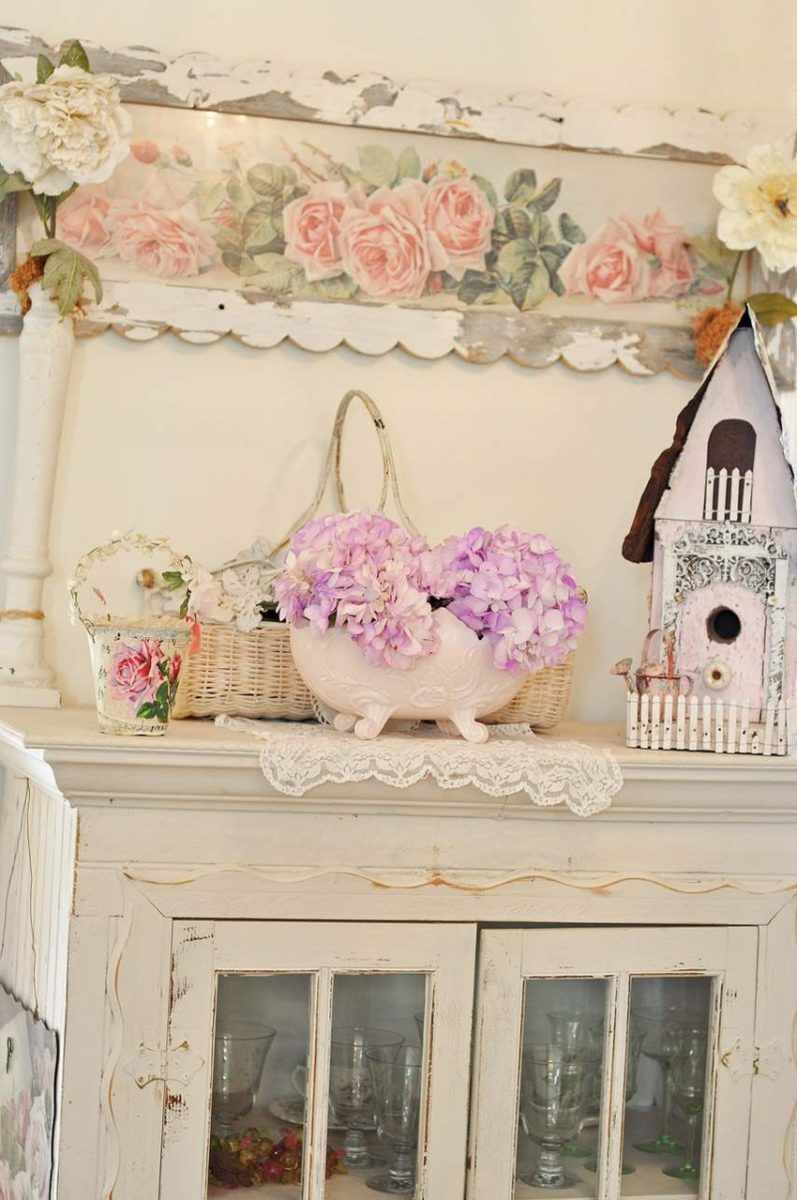 Pour le style provençal, les motifs floraux, les oiseaux sont pertinents. Les couleurs sont nécessairement des tons pastel. Parquet et meubles anciens de couleur blanche aux formes arrondies et atypiques. La conception devrait être douce. L'utilisation réelle des textiles.