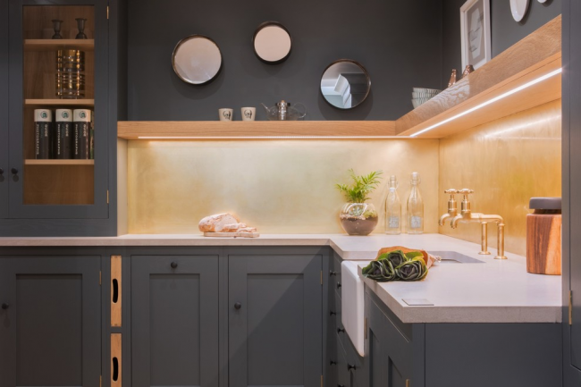 - Il est très pratique lorsque la surface de travail est éclairée par des diodes montées au bas des armoires murales, comme dans la photo.
