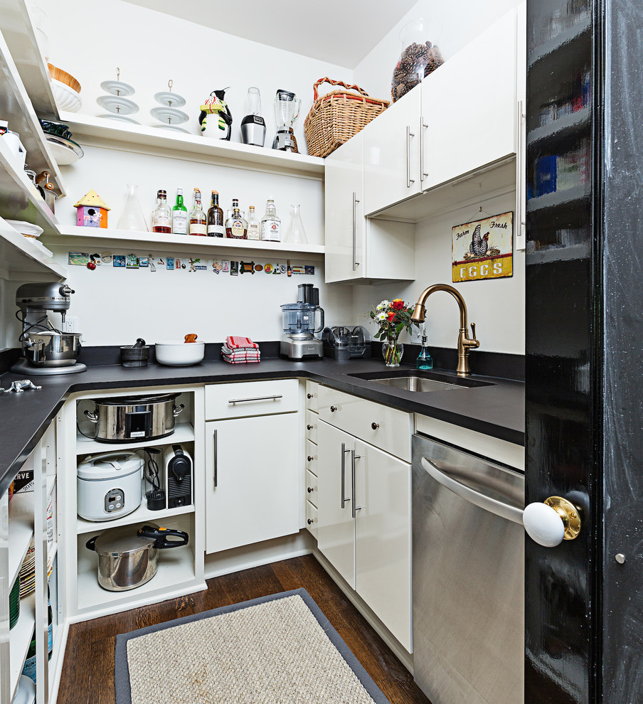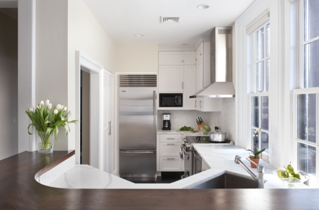 La couleur blanche élargira visuellement une petite cuisine étroite.