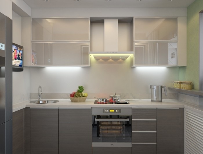 Dans une petite cuisine, chaque centimètre d'espace libre est important, il est donc très important de concevoir correctement un ensemble de cuisine.