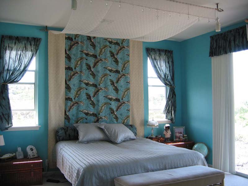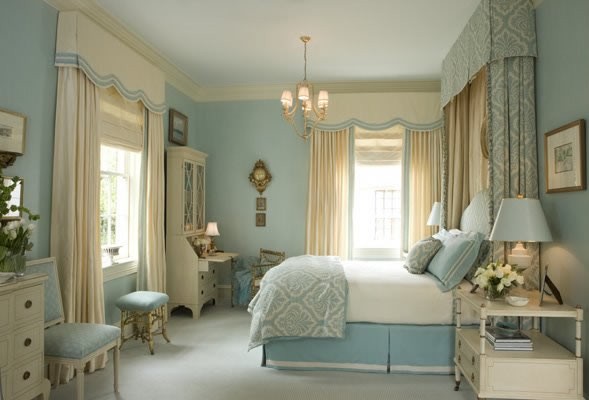 Rideaux gris-bleu pour une chambre à coucher