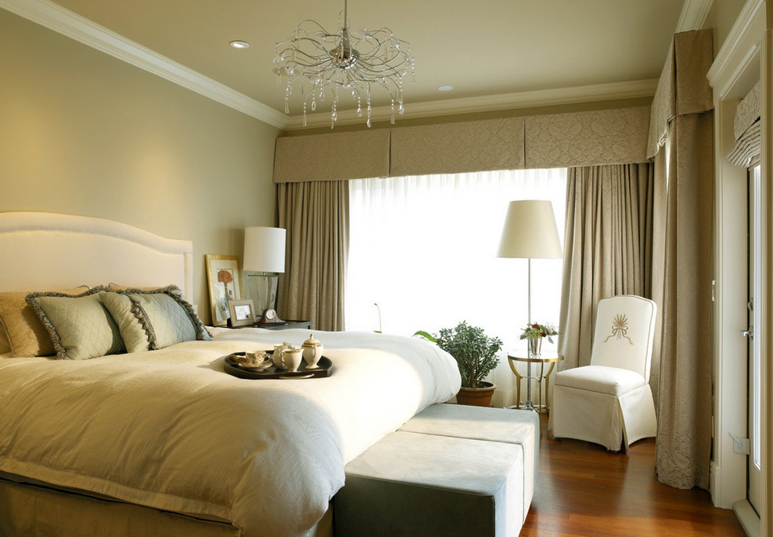 - Couleurs. Dans la chambre à coucher, il vaut mieux acheter des rideaux unis de couleurs calmes. Plus ils sont légers, moins ils absorbent de lumière. En ce qui concerne la conception des chambres à coucher, il est important de trouver une harmonie entre les rideaux et les murs. Ils ne devraient pas fusionner.Même avec la décoration la plus chère, tout cela se transforme en un seul endroit inexpressif. Il devrait y avoir une différence de plusieurs tons entre les rideaux et le papier peint. Ce qui sera plus sombre et plus brillant est déjà une décision individuelle de chaque personne. Les rideaux lumineux augmentent visuellement l'espace et les rideaux sombres le réduisent. Pensez à quel effet vous voulez atteindre. Si vous avez déjà effectué des réparations et décoré les murs avec des matériaux clairs et panachés, il est préférable de choisir des rideaux aux couleurs unies. Et au contraire, les rideaux sont parfaits pour les murs lisses, qui mettent habilement l'accent sur le design d'intérieur.