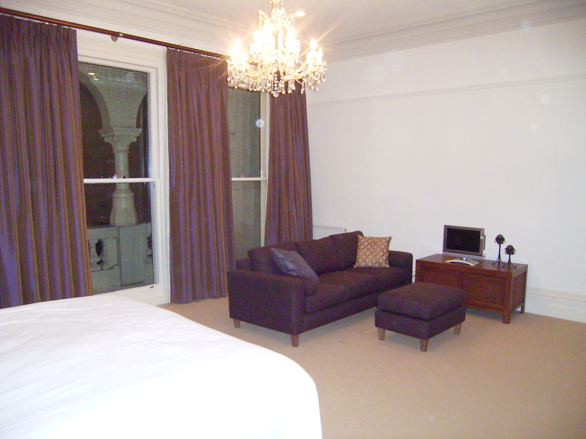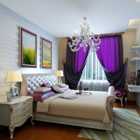Rideaux violets à l'intérieur d'une chambre à coucher