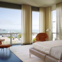 - Haute technologie - Il s’agit de l’utilisation la plus utile et la plus pratique de l’espace de vie, qui ne laisse aucune place à des éléments décoratifs supplémentaires. La chambre à coucher sous cette forme a l’air très ascétique, les rideaux doivent donc être battus très simplement;