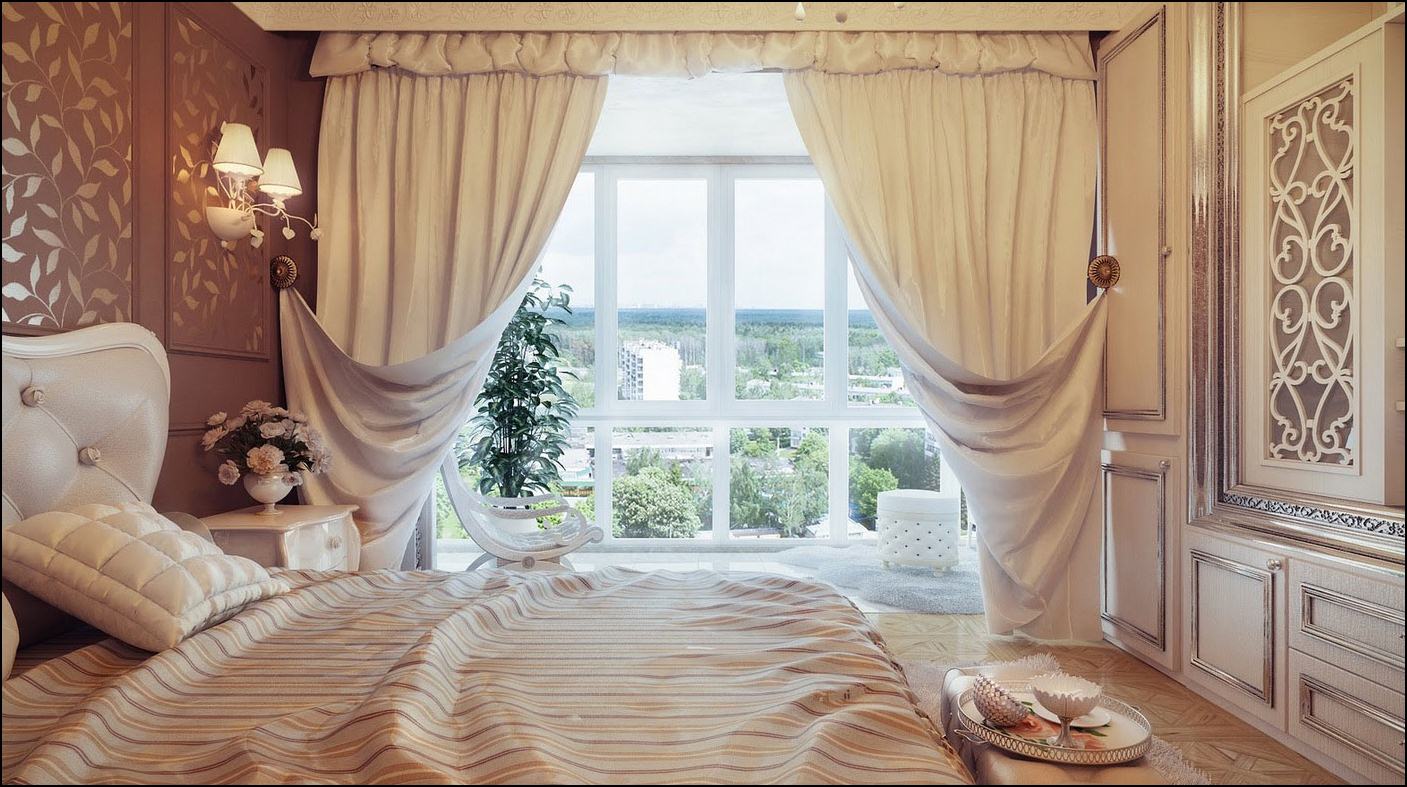 - Style classique - Un style de conception universel, supplanté par les tendances modernes, mais toujours apprécié par de nombreux consommateurs. Dans le style classique, les grandes fenêtres ou fenêtres à la française sont le plus souvent décorées avec des rideaux drapés de velours. La couleur des rideaux doit nécessairement se chevaucher avec le ton des murs et des meubles. Sinon, la chambre à coucher ne sera pas vraiment confortable. Et si l’art déco adore le pathétique, les rideaux sont ici plutôt stricts, élégants et sobres. Les teintes beiges, marron et crème sont populaires. Le style classique est une incarnation traditionnelle des concepts de beauté et de confort.