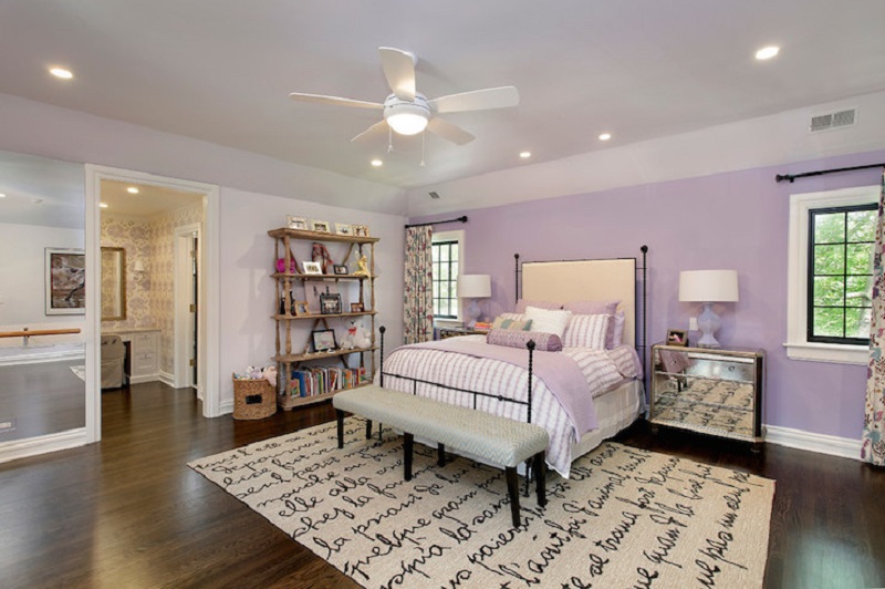 Les nuances délicates et romantiques de lilas sont tout à fait capables de remplacer un joli rose gênant, juste dans les chambres des filles. En remplaçant la couleur et en la diluant avec du beige et de la crème, vous repoussez visuellement les limites de la chambre à coucher. Pour ne pas avoir l'air ennuyeux et flou, créez des accents de couleurs - des affiches monochromes lumineuses, des graffitis colorés sur les murs, des peintures aux riches tons verts, framboises et ocre.