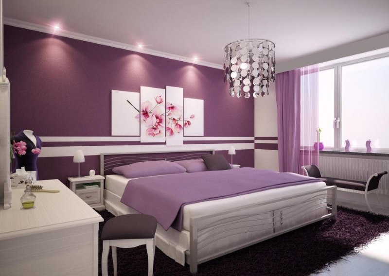 Violet et son compagnon plus léger, la lavande, combinés avec de nombreuses nuances.En règle générale, lors de la décoration de l’intérieur d’une pièce, l’utilisation de 2-3 couleurs est considérée comme correcte, mais avec la lavande, vous pouvez faire une exception.