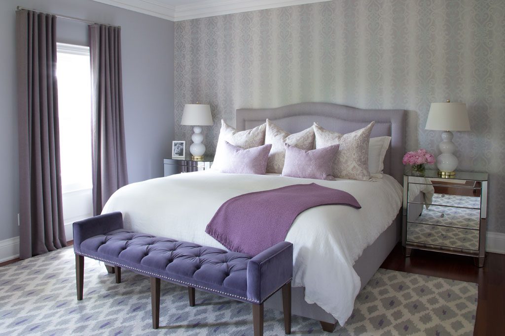 Dans la chambre à coucher classique, les teintes lavande sont idéales pour les textiles et les éléments décoratifs, en particulier en combinaison avec des tons marron clair.