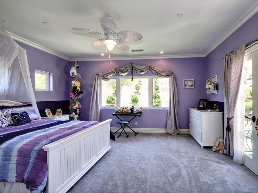 Chez les jeunes, la couleur lavande est également considérée comme élégante. Des nuances saturées de violet associées à des meubles noirs, chocolat ou bleu foncé, à des coussins et à des textiles dorés et turquoises conviendront à la fois à la jeune fille et au jeune homme. Lumineux, élégant et d’une manière particulière - De quoi a besoin une jeune nature créative? Mais lorsque la pièce est petite et sombre, combinez les couleurs épaisses avec prudence, et le mieux dans les éléments individuels du décor.