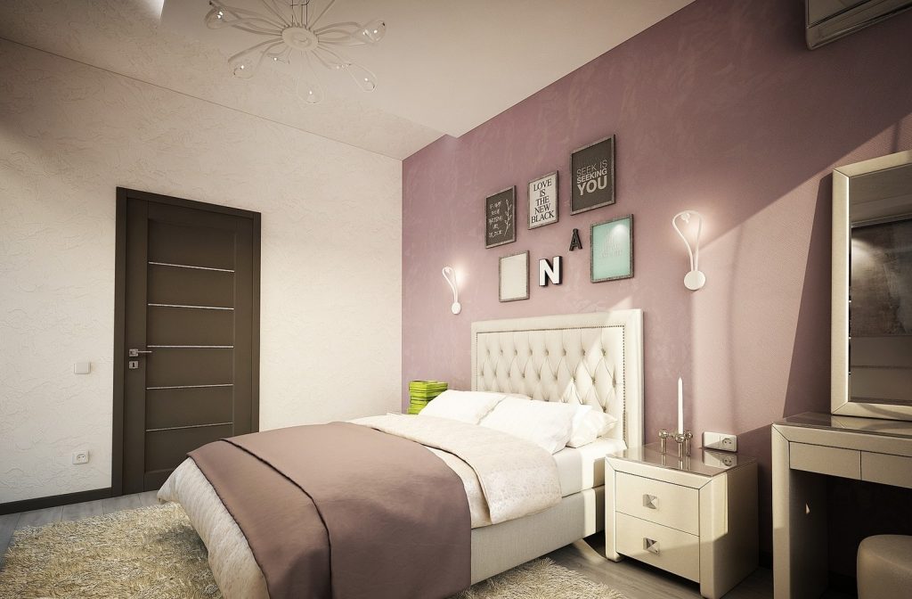 - Lavande légère avec rose, blanc, marron. Cela donnera à la pièce de la légèreté et de la tendresse.