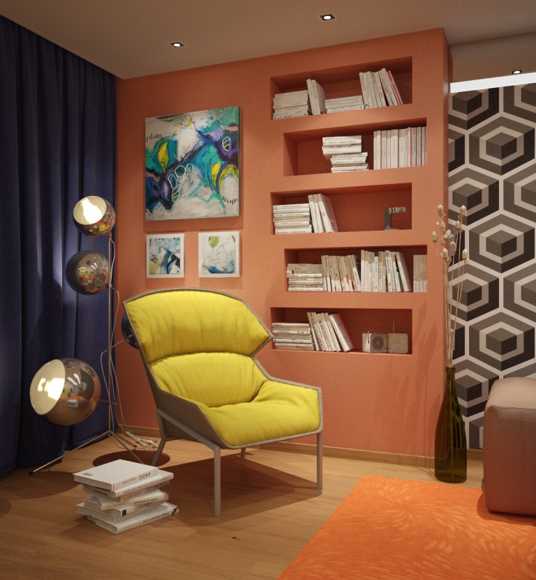 Caractéristiques de l'utilisation de la couleur orange et de ses combinaisons à l'intérieur des pièces
