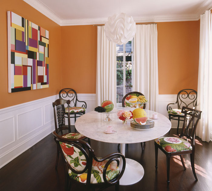 La couleur orange soulève l'appétit, il est donc souvent utilisé à l'intérieur de la salle à manger ou de la cuisine