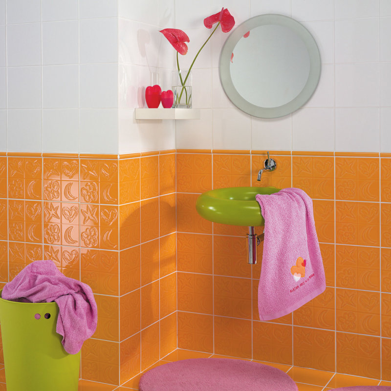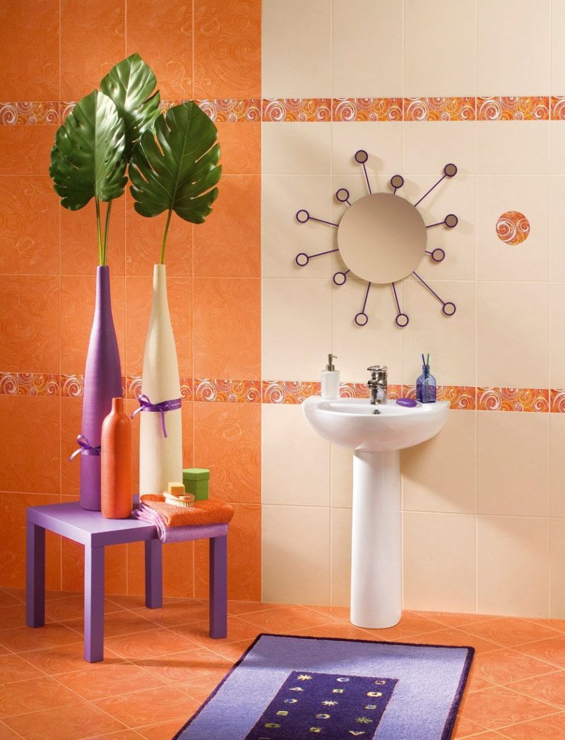 Orange, comme les autres, a ses propres associations, évoque certains souvenirs. Beaucoup se souviennent des couleurs joyeuses de l'enfance, parmi lesquelles, bien sûr, il y a aussi quelque chose d'orange. Ce sont très probablement des mandarines du Nouvel An, des abricots d'été, des robes brillantes ou des bonbons colorés. Mais la couleur orange s'applique non seulement à l'intérieur de la chambre des enfants, mais également à toute autre pièce, y compris le couloir et la salle de bain, comme sur la photo.